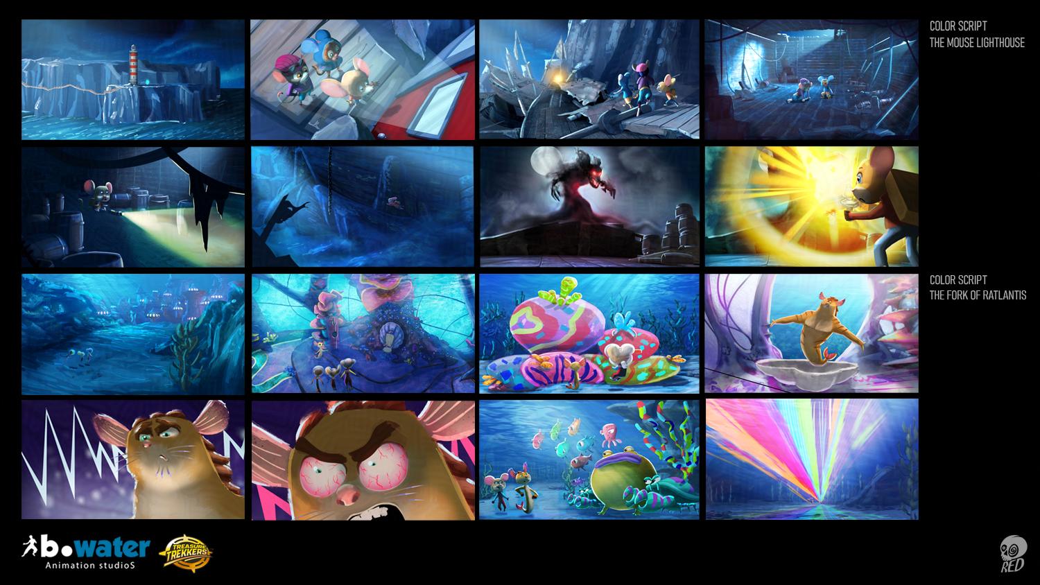 A copilation of some of the work done as Visual Development/Color Script Artist for the 3D Animated TV Series Treasure Trekkers S1.